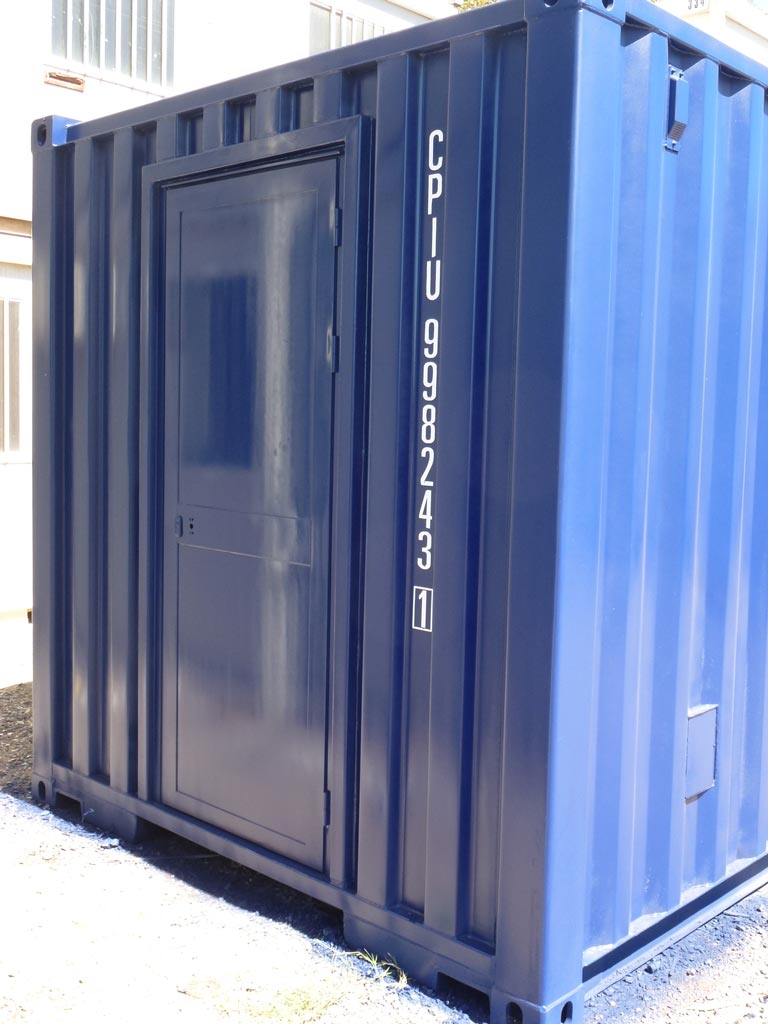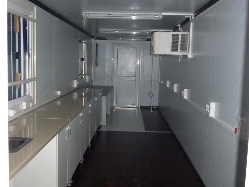 Contenedores marítimos, uno de 20 pies y otro de 40, transformados en laboratorio móvil que gracias a su diseño sin modificar las dimensiones exteriores pueden ser enviados a cualquier lugar del mundo en un buque portacontenedores sin tener que pagar sobredimensiones,  como si fuera un contenedor marítimo más. Nótese que las ventanas tienen unos protectores para el transporte y los aires acondicionados son retráctiles para que se pueden esconder y no romper las medidas estándar del contenedor marítimo cuando sean transportados.
