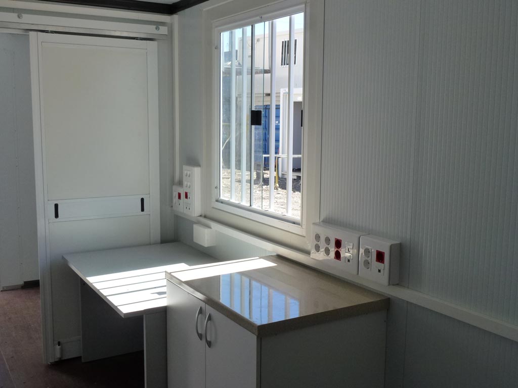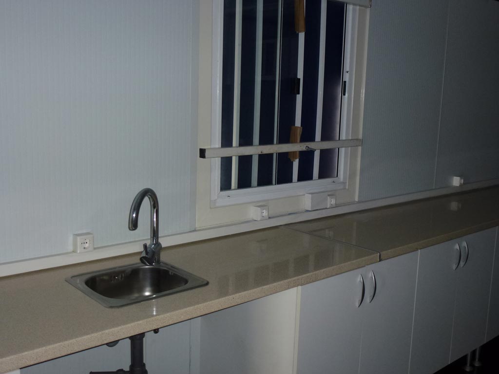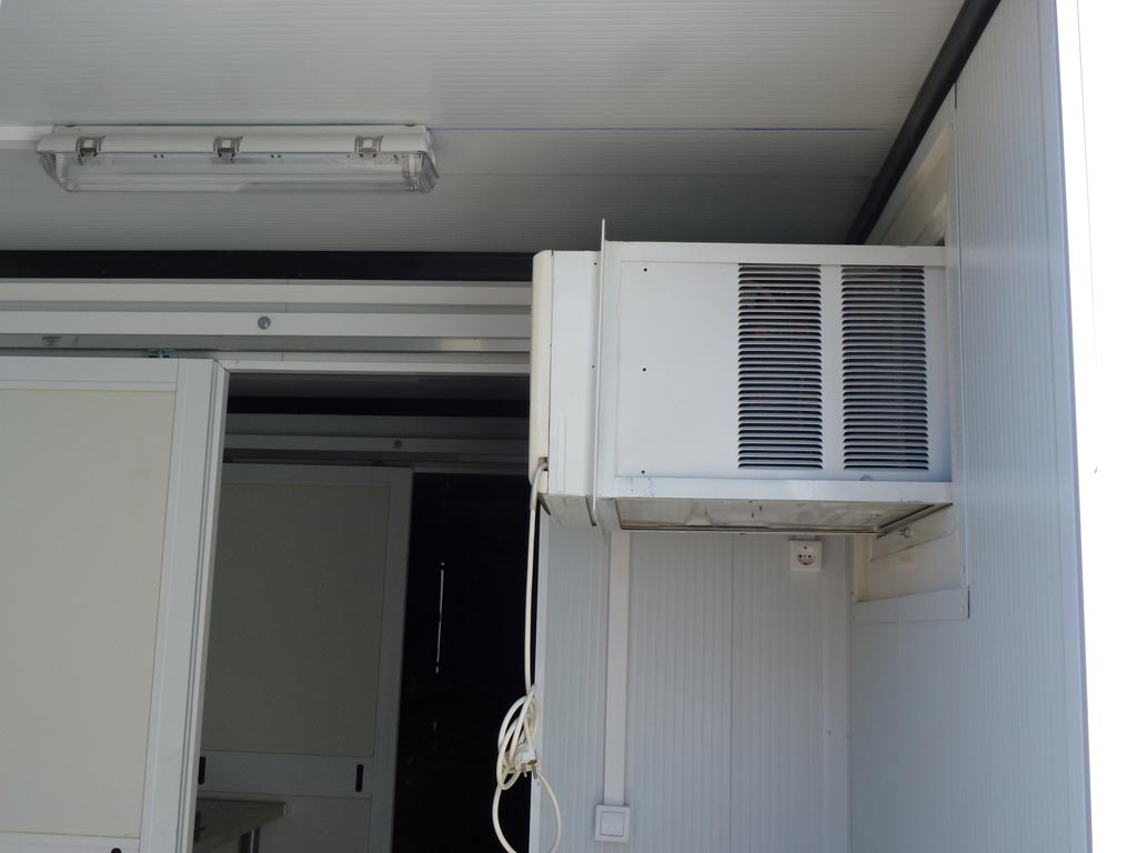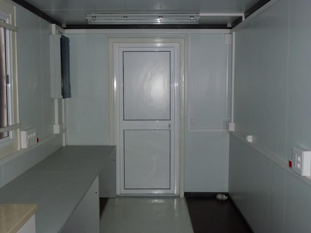 Un punto muy importante a tener en cuenta en esta y otras transformaciones de contenedores marítimos es el aislamiento térmico. Debido a que el contenedor marítimo es una caja de hierro en su interior y sin aislamiento hace mucho calor en verano y mucho frío en invierno. Por eso cuando en el interior del contenedor van a trabajar personas siempre solemos poner un aislamiento térmico que consta de un aislante más un panel sandwich. Este tipo de acabado además de proteger de la temperatura queda más bonito.