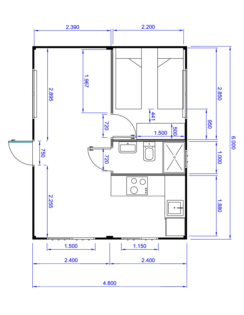 - Los módulos son personalizables en cuanto a los materiales de acabados, suelos, pintura, alicatados, etc… y son elegidos por usted con el asesoramiento de nuestros comerciales.