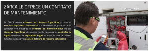 En ZARCA somos expertos en cámaras frigoríficas y tenemos técnicos frigoristas certificados. Le ofrecemos la posibilidad de contratar con nosotros el contrato de mantenimiento de sus cámaras frigoríficas, de manera que le hagamos los controles de fugas periódicos, la reparación fugas en caso de que se hubiera detectado alguna y la gestión del libro de registro obligatorio